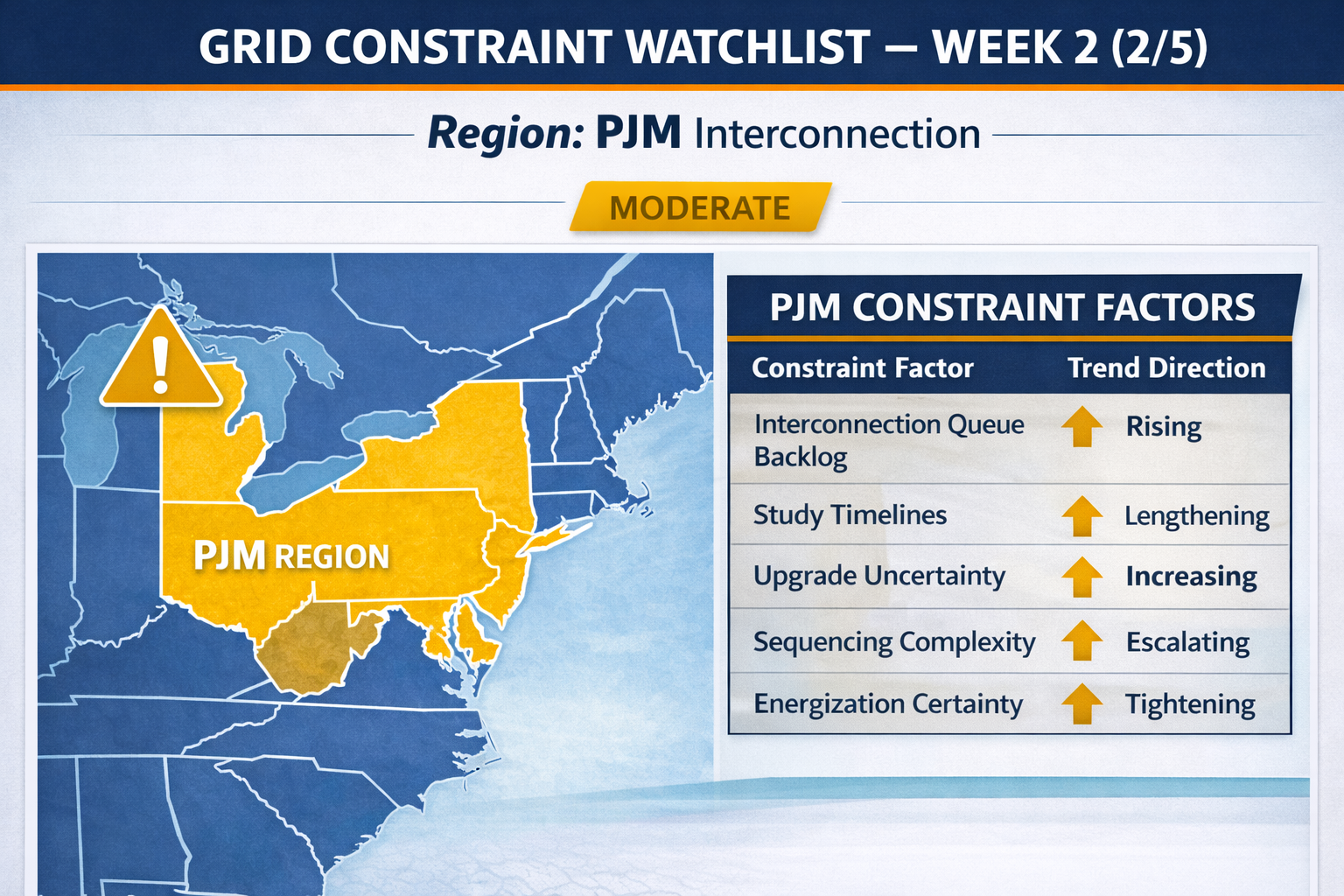 PJM remains a critical market for data infrastructure, industrial expansion, and electrified growth. However, backlog and process complexity require disciplined planning.