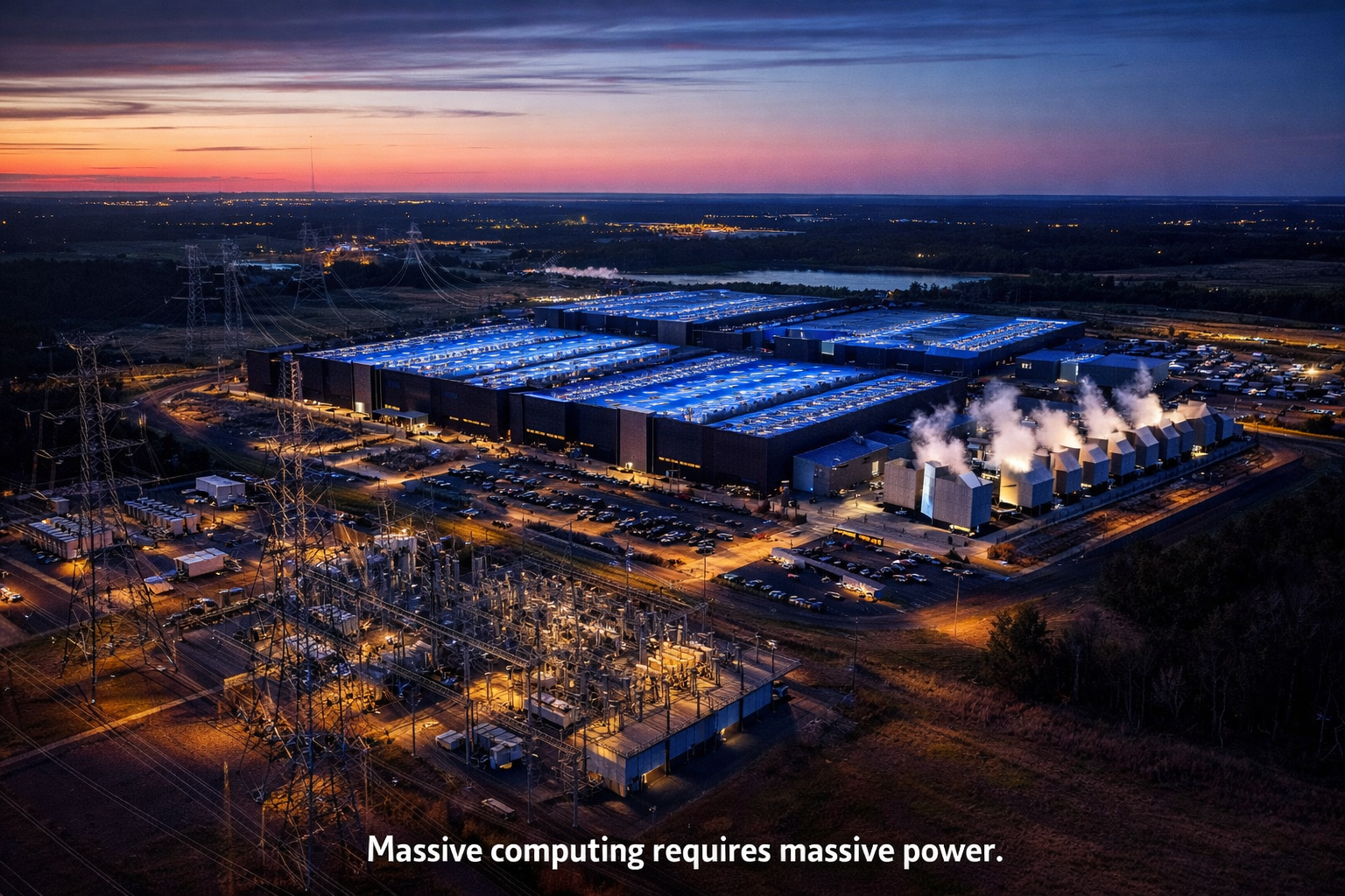 Facilities like the ones being built across the computing sector today require enormous amounts of electricity to operate. Thousands of machines running around the clock. Industrial cooling systems. Massive electrical infrastructure.